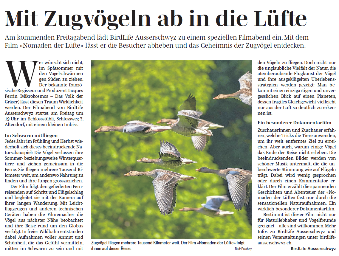 Der Verein BirdLife Ausserschwyz